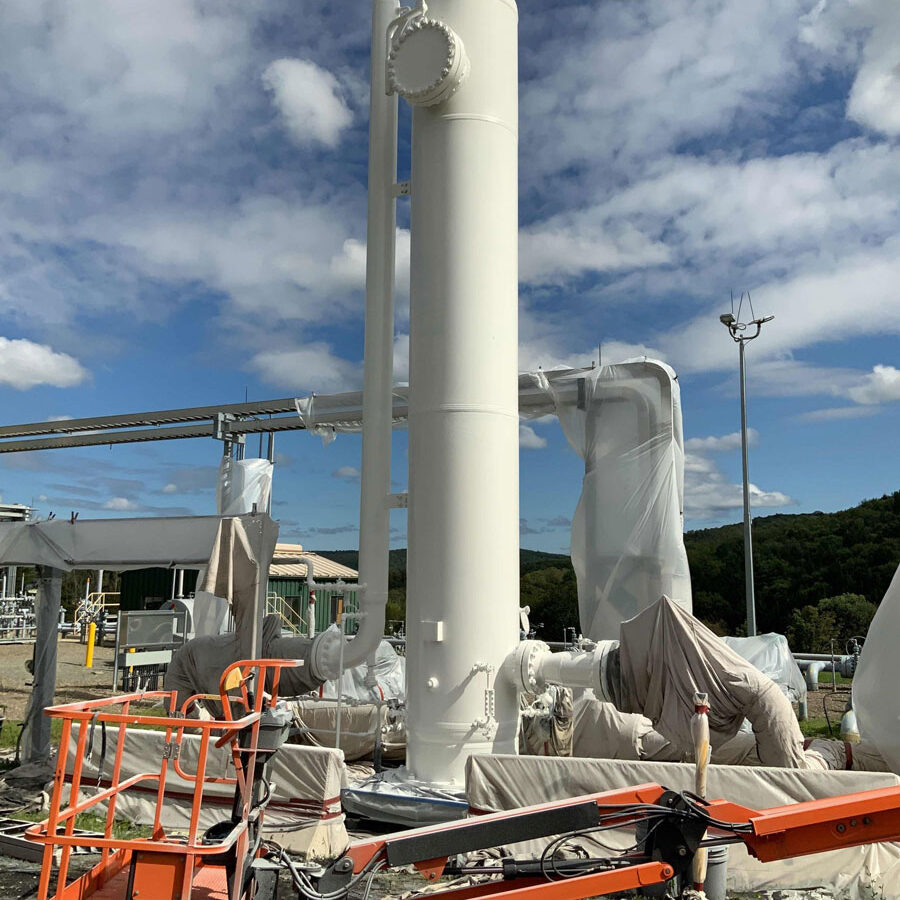 There are all sorts of assets our customers look to protect from corrosion and other issues. This Contact Tower is part of a Dehydration system at a natural gas compressor station located in Stueben County NY.